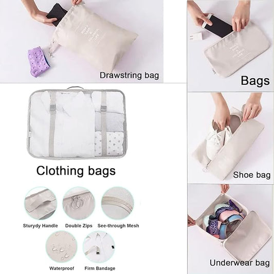 Set Travel Organizer Storage Bags- 7 Pcs - Beige